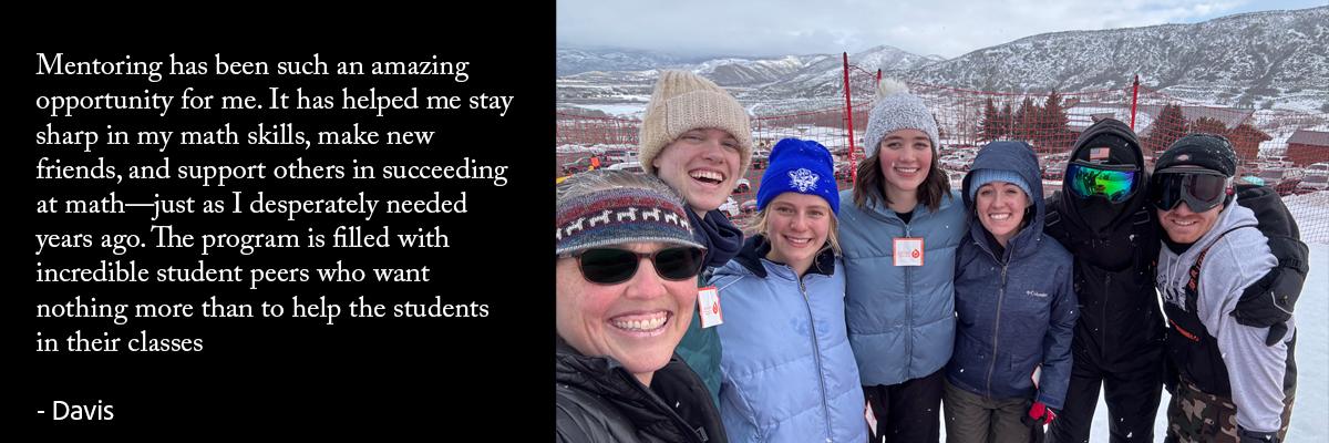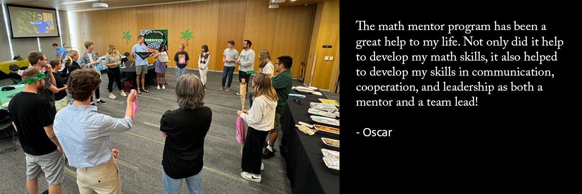 Math mentors are UVU students who have recently either completed a developmental mathematics course or a mathematics course that satisfies their quantitative literacy requirement. Math mentors model self-awareness, critical thinking, and commitment to rigorous academic standards. They support their instructors by aiding in the planning and facilitations of their classes. Math mentors help students in developmental mathematics courses by helping them discover how to be smart learners of mathematics through study groups as well as studying independently.