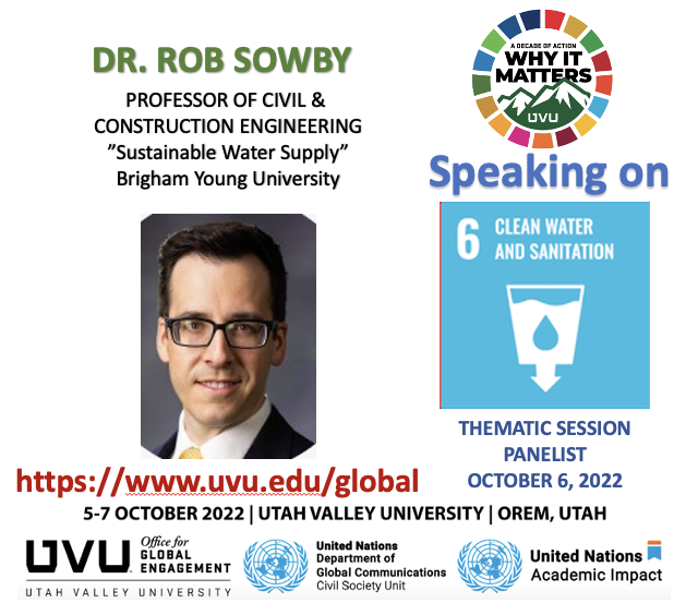 Dedicated to advancing sustainable water supply, Dr. Robert B. Sowby is a licensed professional engineer with particular expertise in drinking water systems. He teaches and studies environmental engineering, urban water infrastructure, and sustainability at Brigham Young University. Dr. Sowby studied civil engineering at BYU, the Massachusetts Institute of Technology, and the University of Utah and practiced for 10 years in industry before coming to BYU. His other interests include classical music, mountaineering, business, German literature, and travel.