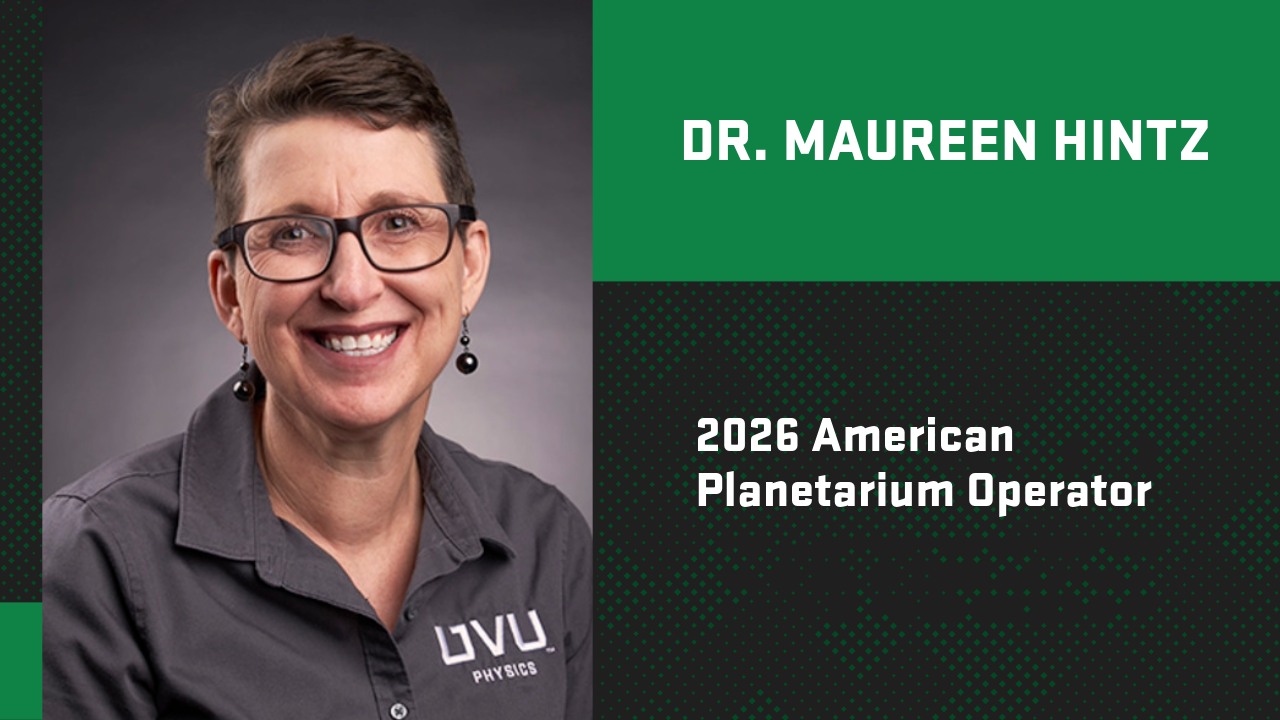 Dr. Maureen Hintz, lecturer in the Department of Physics at Utah Valley University (UVU), has been selected as the American Planetarium Operator in Italy for 2026 by the International Planetarium Society.