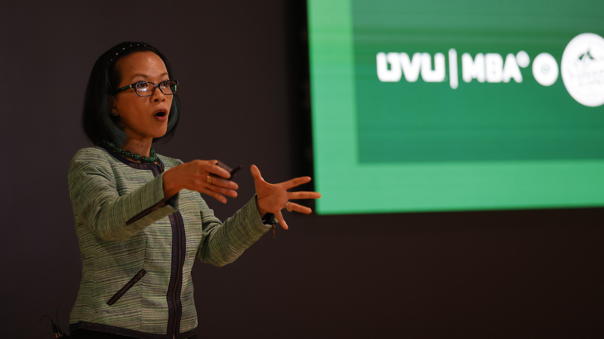 Utah Valley University (UVU) President Astrid S. Tuminez addressed university students, faculty, and staff Wednesday in the Vallejo Auditorium for an in-person “Talk with Tuminez” town hall meeting.