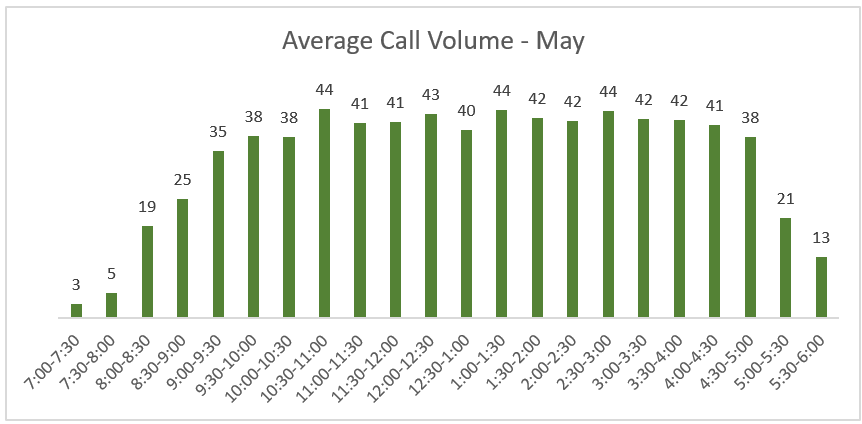 • The average time each phone call lasted. This graph shows from January to the current month.