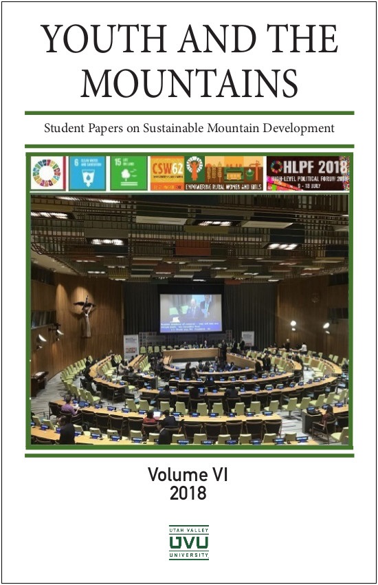 The 2018 issue of the Youth and the Mountains Journal continues the established tradition of promoting the Sustainable Mountain Development (SMD) agenda of the United Nations in the state of Utah. The journal highlights Utah Valley University’s student engagement model and provides a forum for student undergraduate research along with advocating and developing student academic scholarship. This journal seeks to engage students across the campus, including both non-traditional and traditional ones. 2018 marks the 6th edition of the Youth and the Mountains Journal, and my second year as editor in chief, which has been an honor.