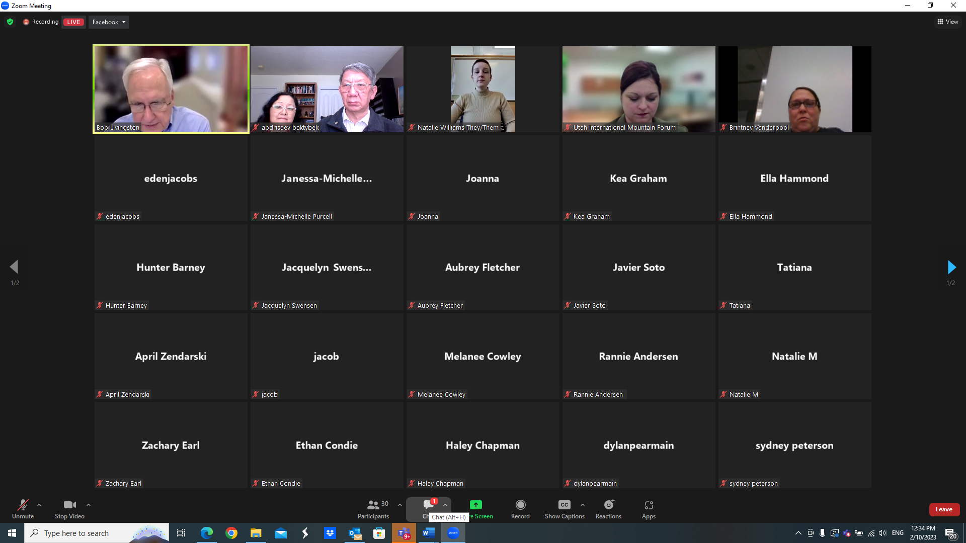 Many students of Professor Baktybek Abdrisaev’s POLS 1000 American Heritage class, including myself, Alitha Thompson, Kea Graham, Jacob Nielsen, Teah Lowry, Kristin Keaton, and Brintney Vanderpool took the opportunity to ask the Honorable Mr. Livingston questions about his experience as a Congress member and his family history. In all, students submitted over 30 questions. Alitha asked how rural mountain communities could better share their voice with Congress. Mr. Livingston recommended taking advantage of Congress members’ town halls and constituency service programs. I asked how peace and justice studies concepts could be introduced into Congress to promote reconciliation and bipartisanship. Mr. Livingston stressed that communication and negotiating across the aisle is fundamental and expressed concern over how social media and news is driving the two major parties further apart. Kristin Keaton asked Mr. Livingston what the biggest impact was he felt he made while in Congress. He highlighted his ability to balance the national budget in 1999 which was the first time it was balanced in about 30 years and the last time since. Finally, Brintney Vanderpool was listening in with her daughter who was able to ask Mr. Livingston if he inherited the quill used to sign the Declaration of Independence. He said he wished he had!